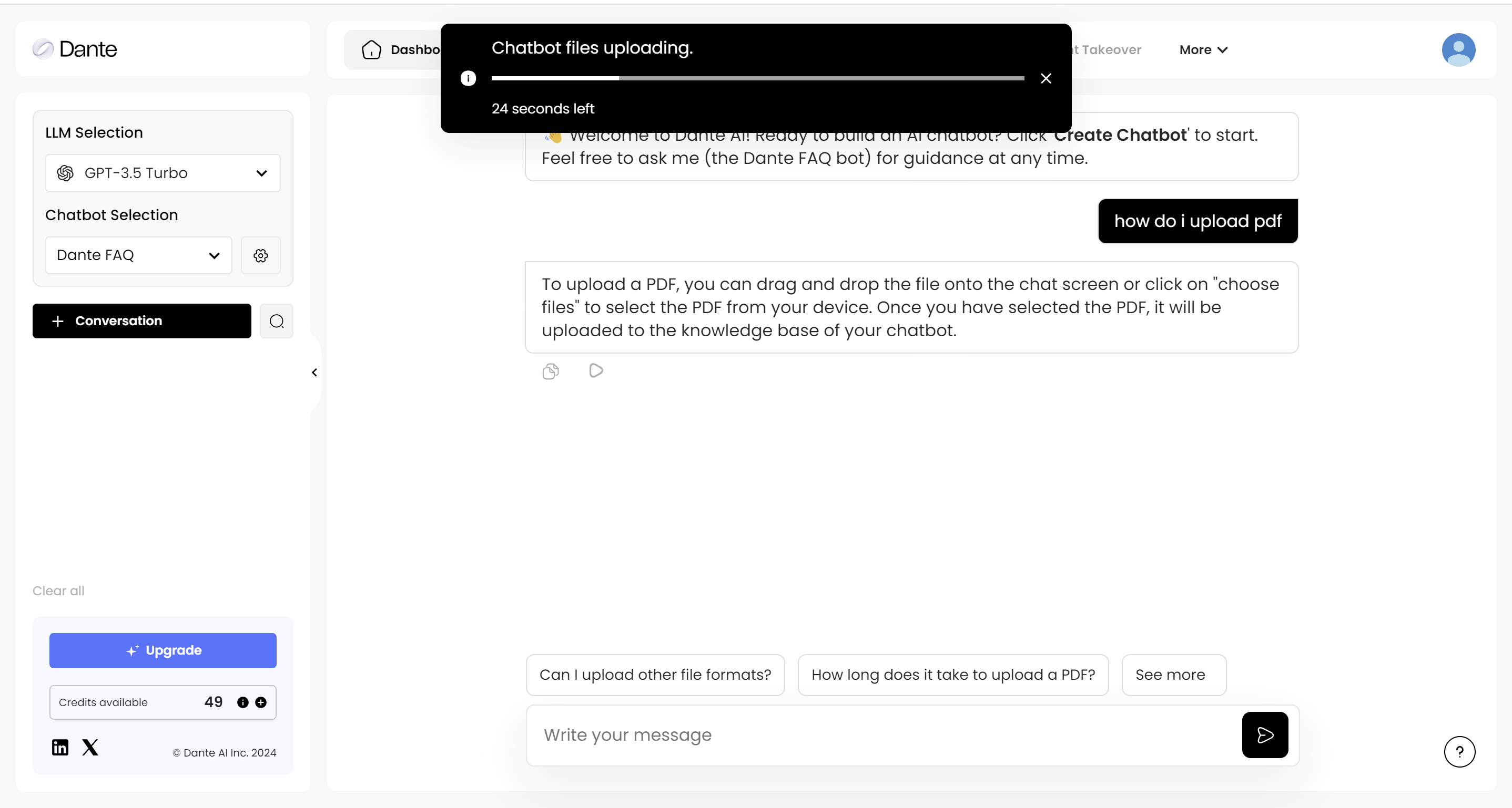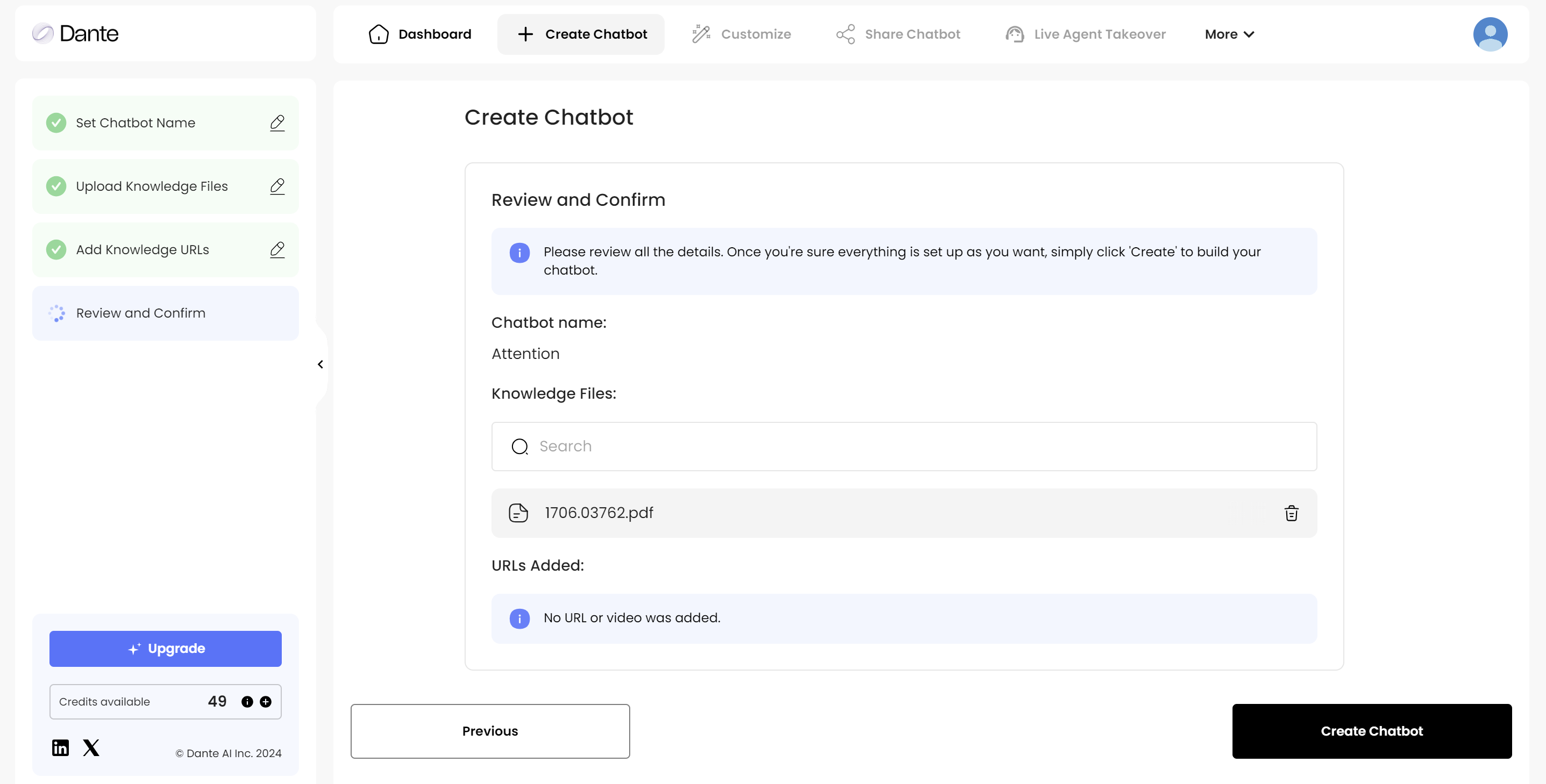 학습이 완료되면 Dante AI는 질문을 하고 이를 통해 논문을 이해하기위한 knowledge-base를 쌓을 수 있음.