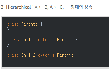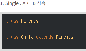 부모클래스는 여러 자식 클래스를 가질수 있지만 여러 부모클래스를 가질 수는 없다.