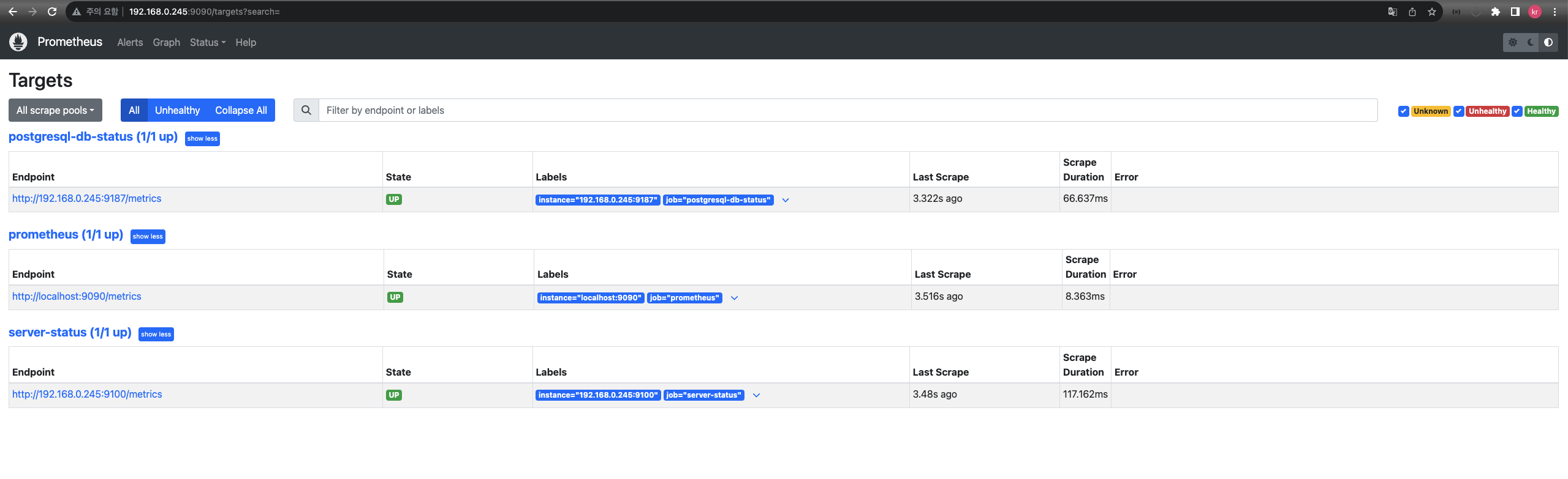 prometheus.yaml에 postgresql-exporter 추가 후 Prometheus container 재시작