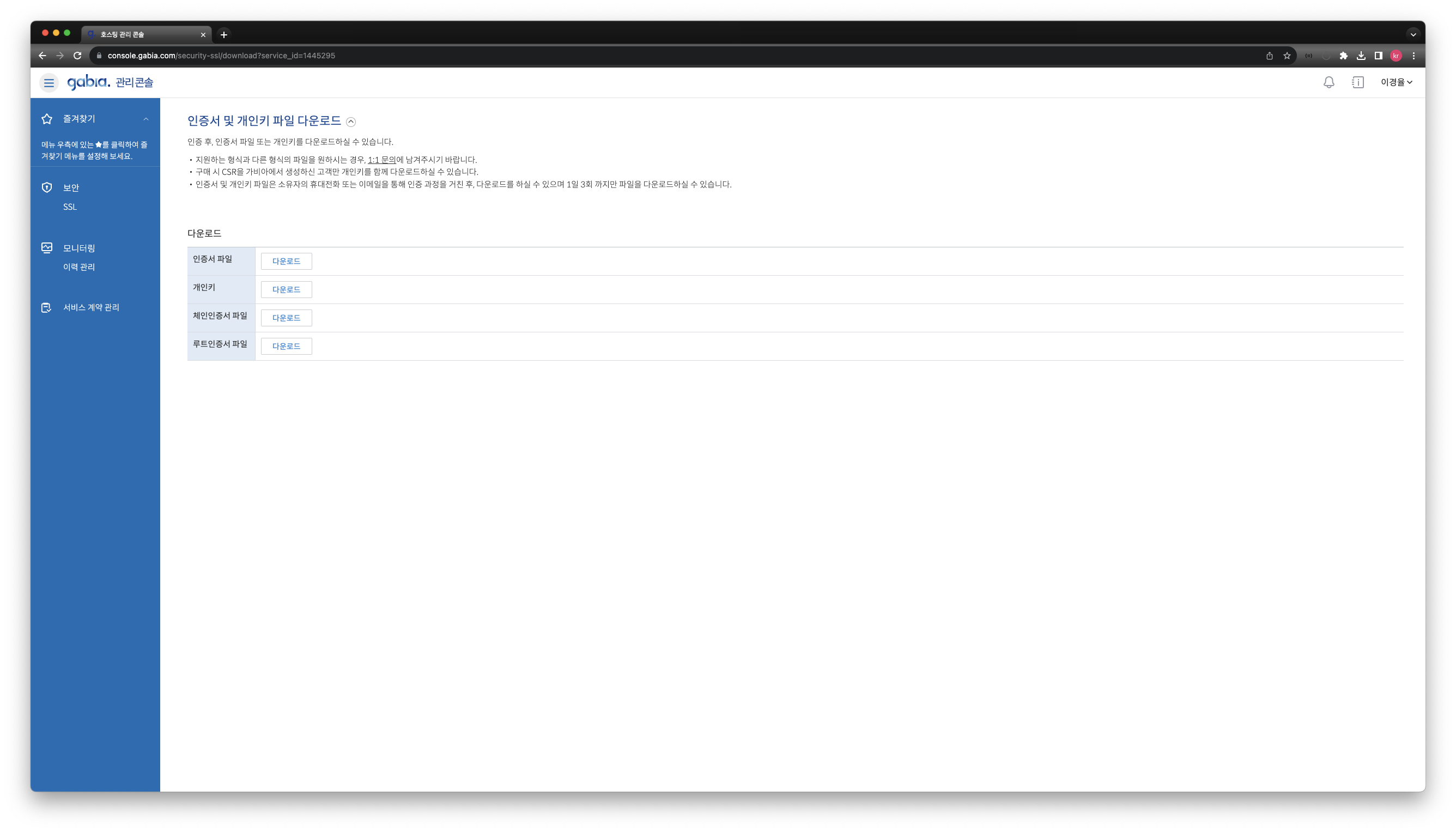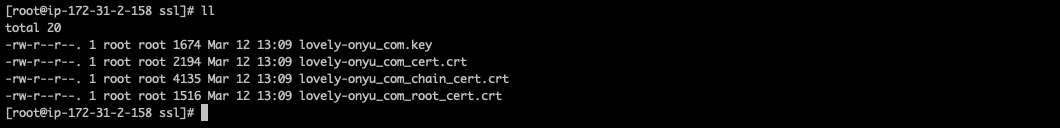 # ssl 디렉터리를 새로 만들고 그곳에 위에서 다운로드 받은 파일들을 보관했다.