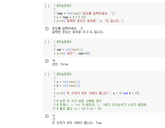 계산 우선순위: 산술 > 비트(&, |, ~) > 관계(>, <, <=) > 논리 (and, or, not)