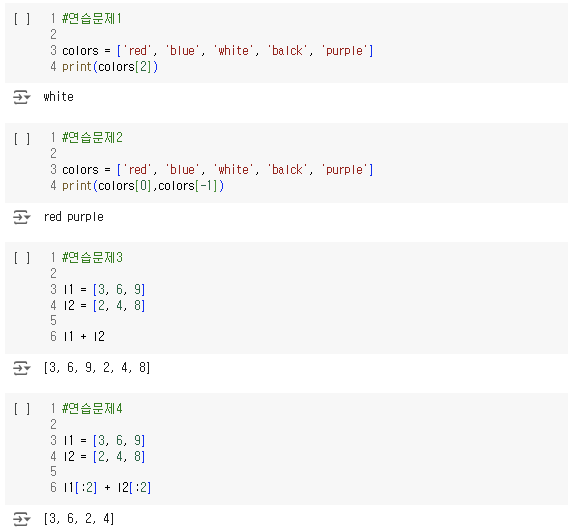 colors = ['red', 'blue', 'white', 'black', 'purple']