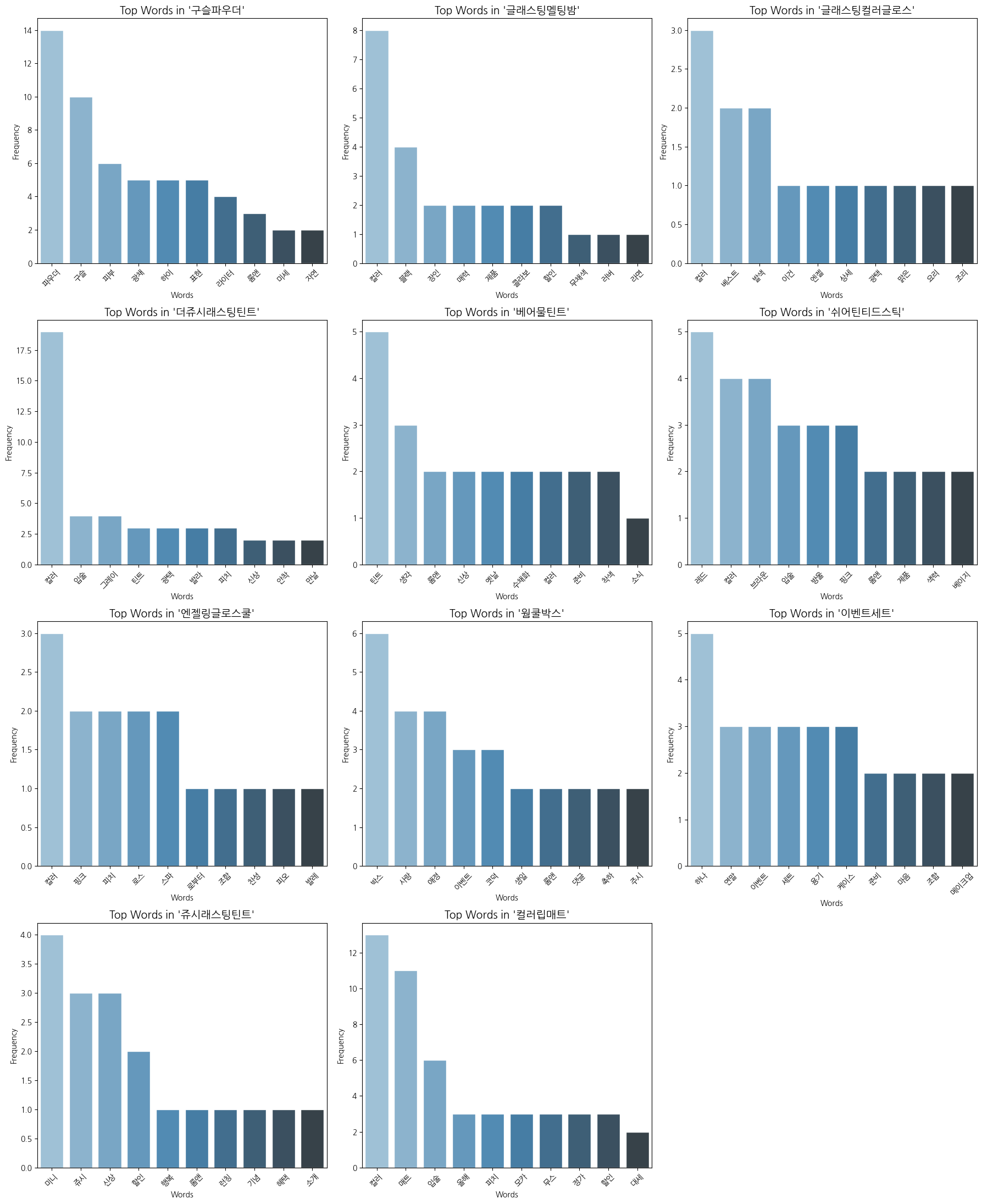일단 제품별 게시물 글 단어 빈도만 뽑아봄