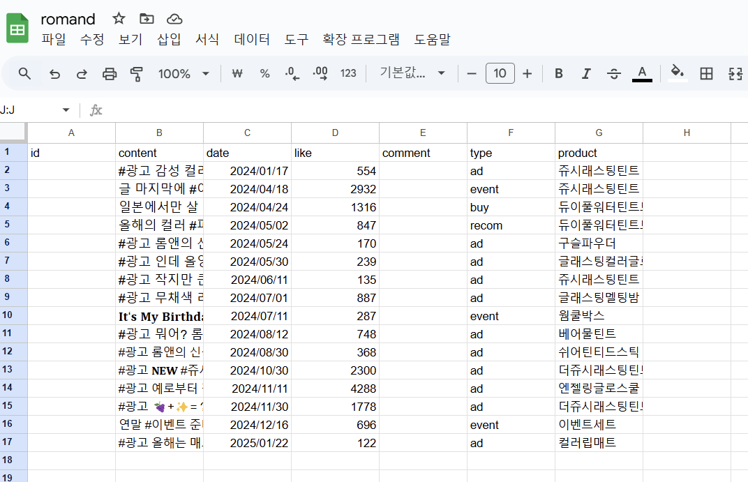 #롬앤 으로 검색시 최근 데이터 수집의 어려움