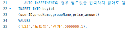 INSERT에서는 해당 열이 없다고 생각하고 입력