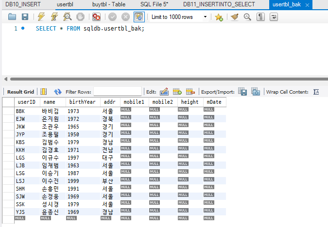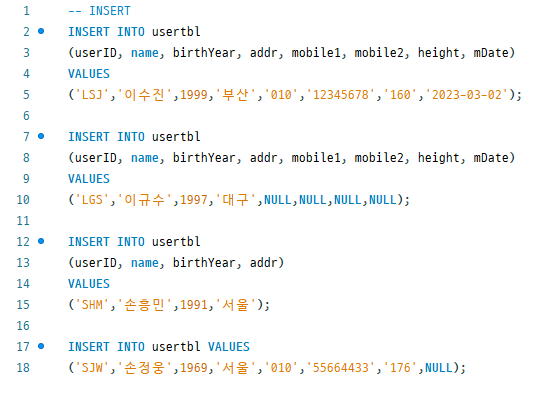 데이터를 변경하는 구문