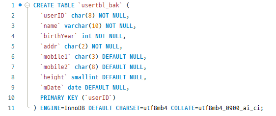 생성된 테이블