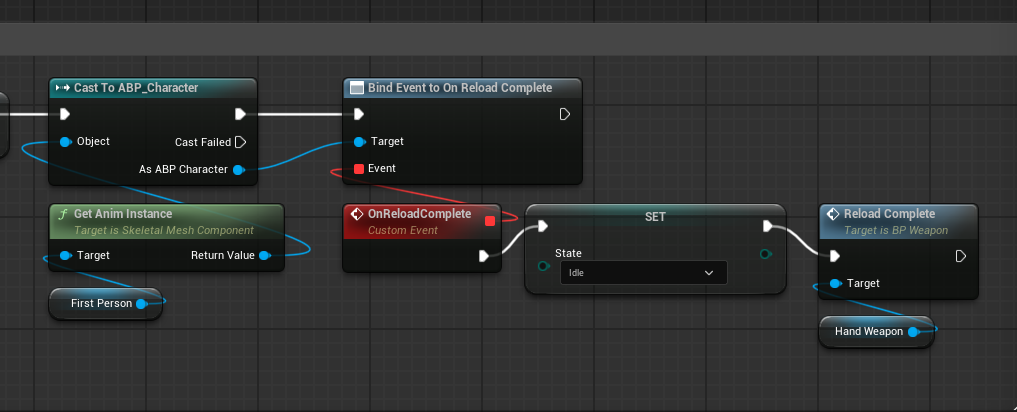 Characeter에서 해당 Event를 Bind하여 다시 State를 Idle로 바꾸고, Reload를 마무리함.