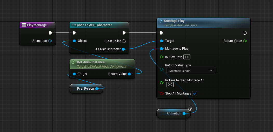 이때 Weapon이 2종류이기 때문에 각 Weapon마다 Animation Montage를 설정하여 함수의 입력 값으로 주도록 구현함.