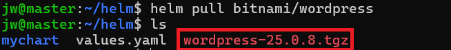 helm pull 명령어는 원격 저장소의 차트를 설치하지 않고, .tgz 패키지 파일 형태로 로컬에 다운로드한다. 이는 차트의 내부 구조나 values.yaml 파일의 내용을 분석할 때 유용하다.