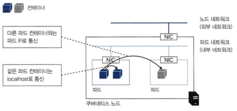 하나의 파드 안에 있는 컨테이너들은 동일한 네트워크 네임스페이스와 IP를 공유한다