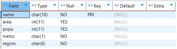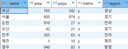 SELECT name, region, metro, '20210629', '신입', area, popu