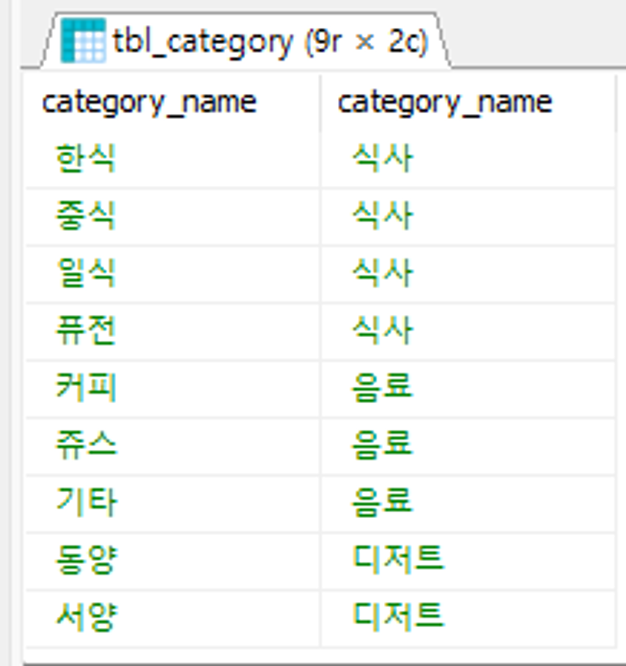 JOIN tbl_category b ON a.category_code = b.category_code;