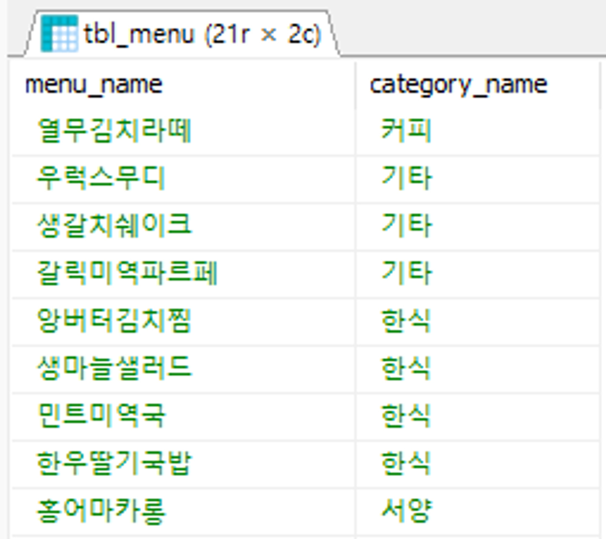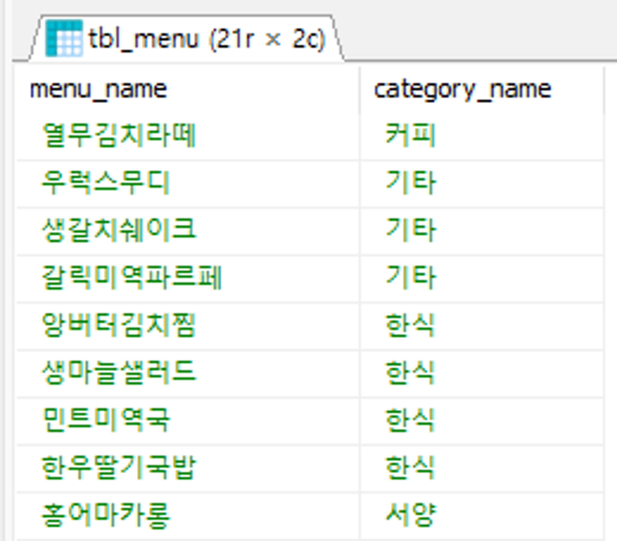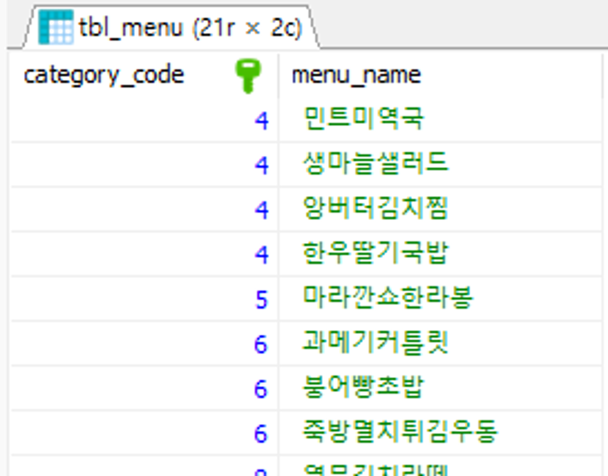 -- INNER JOIN tbl_category b ON a.category_code = b.category_code;