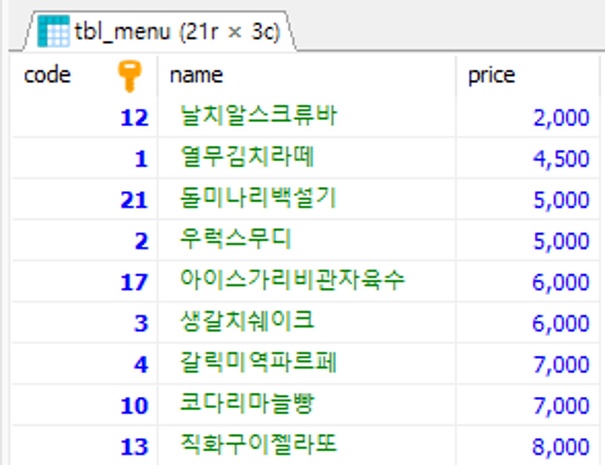 menu_code AS 'code'