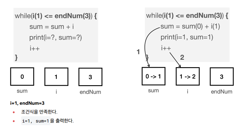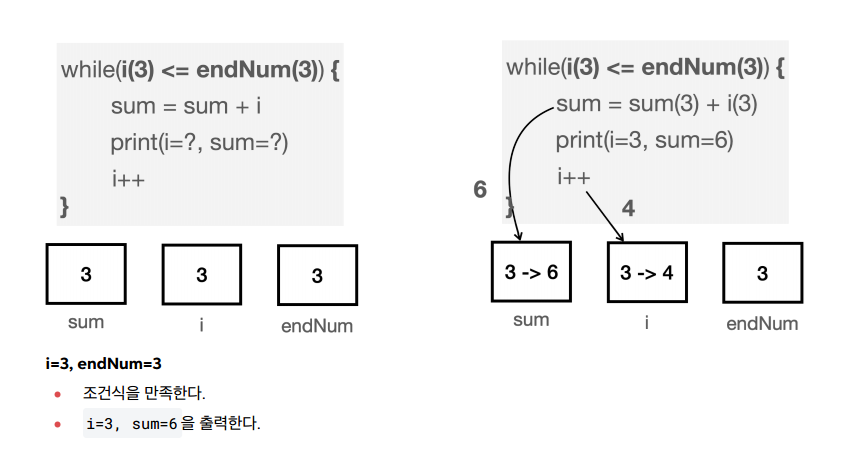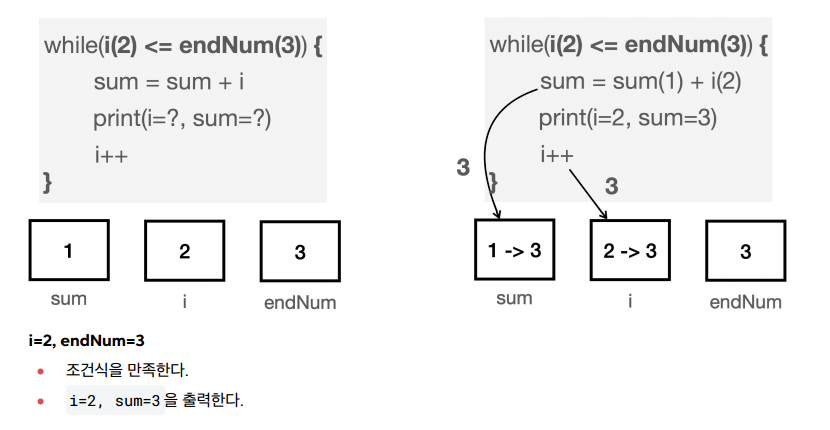 i=1 , endNum=3 이므로 다음 코드를 총 3번 반복해야 한다.