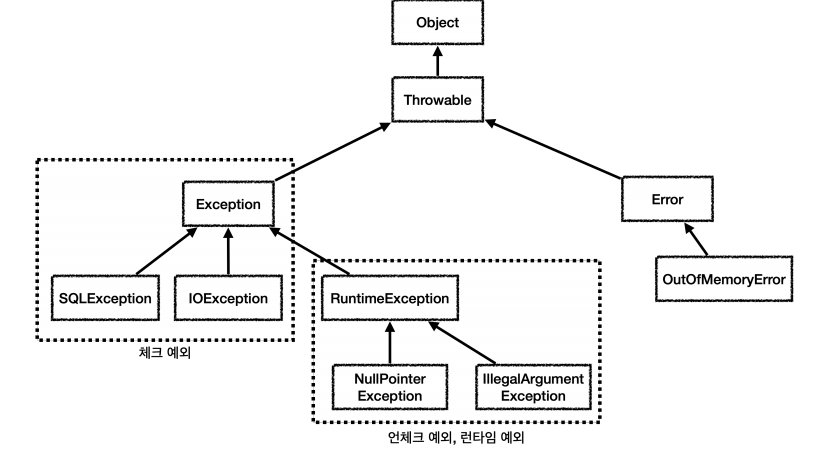 * RuntimeException을 상속받은 예외는 언체크 예외가 된다.