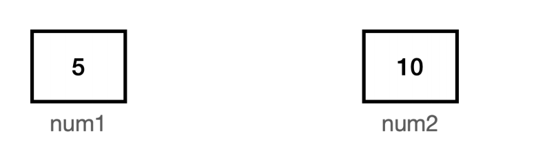 num2 = 10; // num2에 10을 대입한다. 결과: num1(5), num2(10)