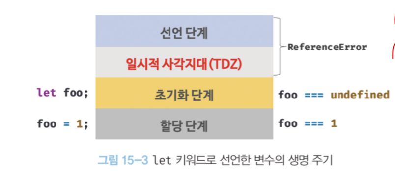 스코프의 시작 지점부터 초기화 시작 지점까지 변수를 참조할 수 없는 구간을 일시적 사각지대(Temporal DeadZone -> TDZ)라고 부릅니다.