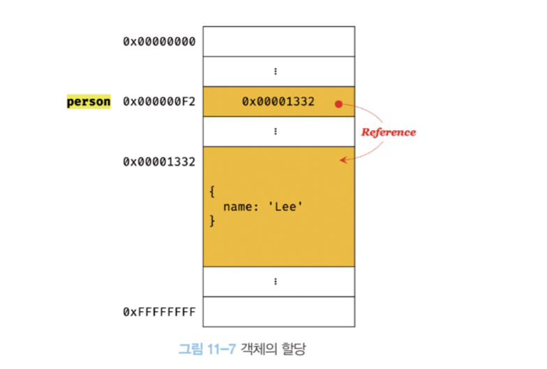 객체는 프로퍼티의 개수가 정해져 있지 않고 , 동적으로 추가 삭제가 되기 때문에 원시 값과 같이 확보해야 할 메모리 공간의 크기를 사전에 정해둘 수 없습니다.