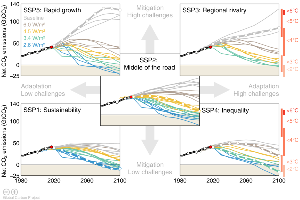 IPCC proposed five SSP scenarios, each describing a different socio-economic pathway.