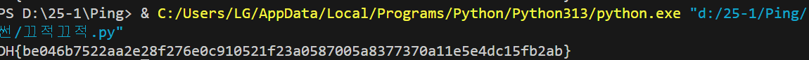 4. 파이썬 코드를 그대로 실행하였더니 터미널에 플래그가 출력되었다.