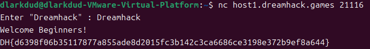 2. vm 접속 후 드림핵에서 제공하는 nc 명령어 입력