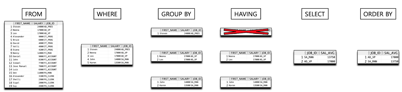 where, having, group by 의미 차이 기억