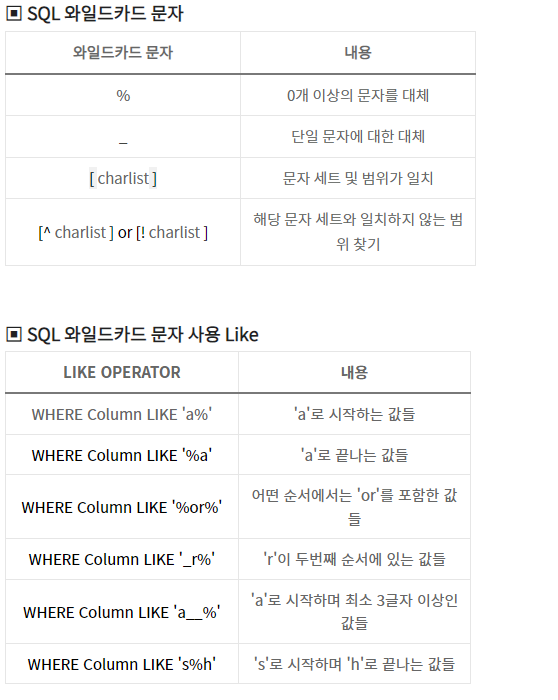 🔽 와일드 문자의 종류