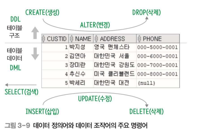 🔽 데이터 정의어와 데이터 조작어의 주요 명령어