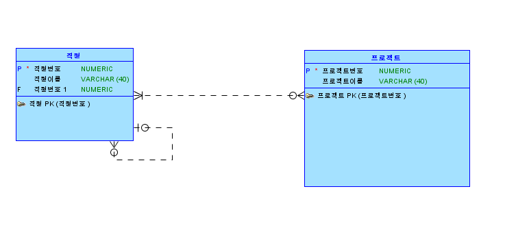 REFERENCES 프로젝트 ( 프로젝트번호 );