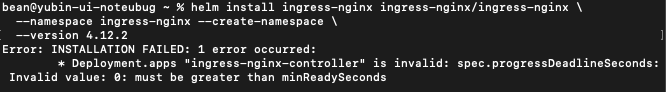 progressDeadlineSeconds: 0으로 설정되어서 Kubernetes에서 거부당함