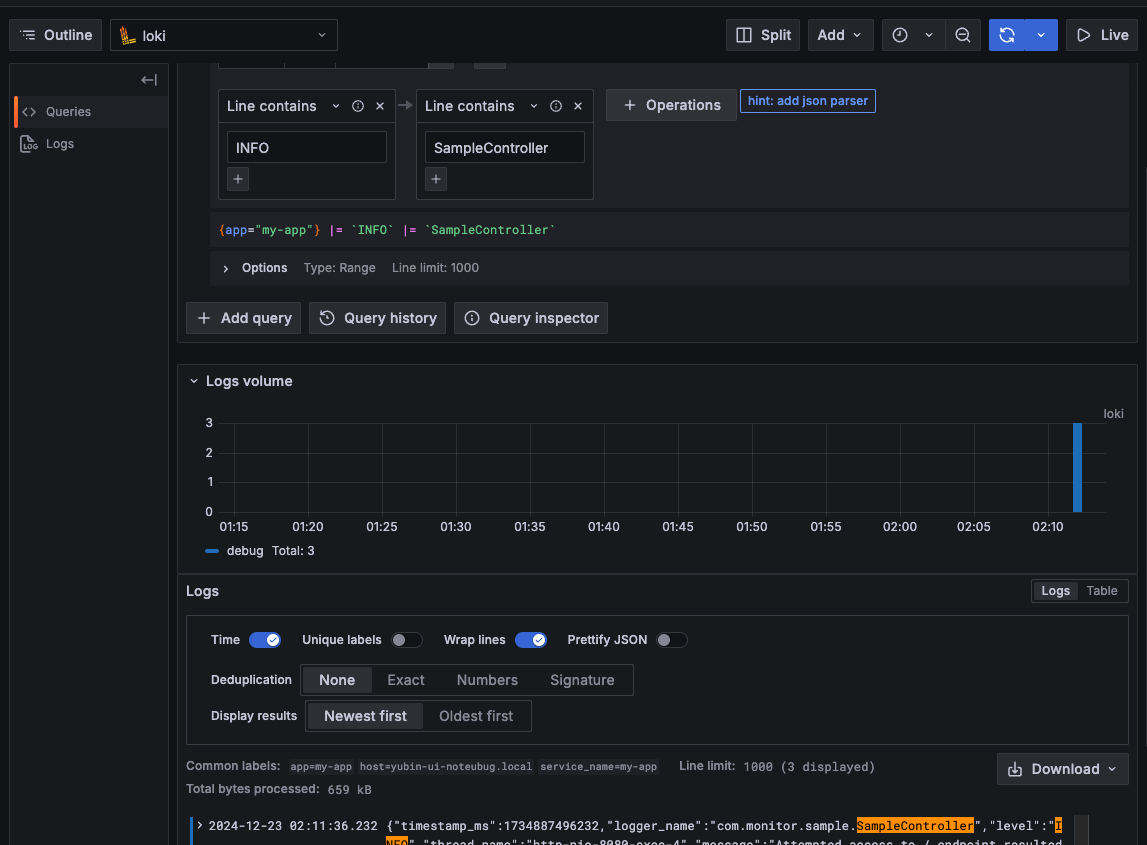 2. 문제 디버깅: 특정 시간대에 발생한 오류 로그를 검색하고 관련된 메트릭과 연관 분석