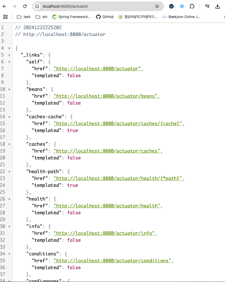 /actuator로 접근하면 내용을 확인할 수 있다.