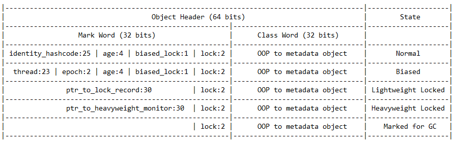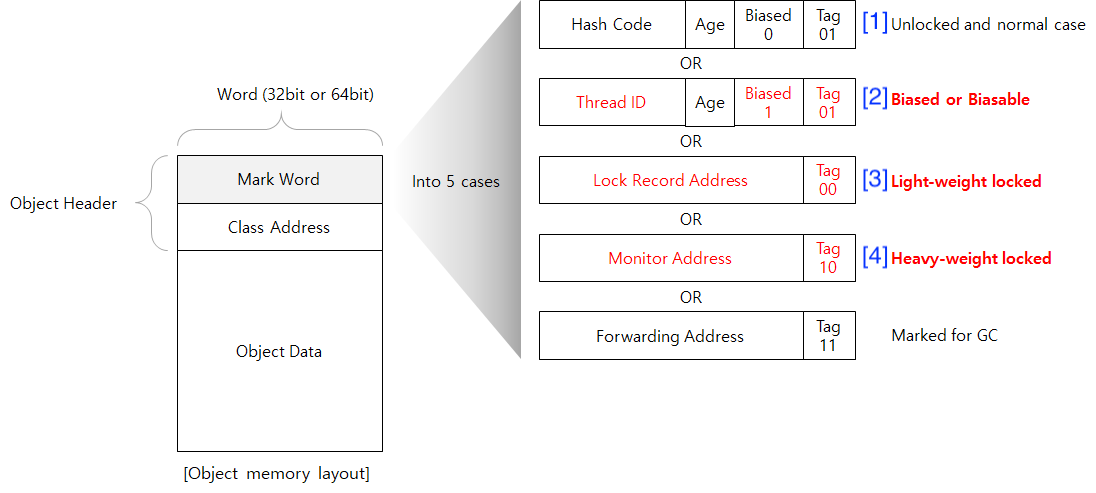 Lock 비트는 JVM에서의 Biased locking, Lightweight locking, Heavyweight locking을 지원하기 위한 필드이다.