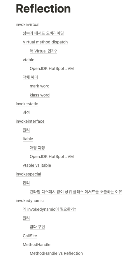 그 와중에 유일하게 바이트코드만 이야기하는 Reflection과 invoke 바이트코드 명령어 챕터 발표에 당첨되버린 나. 머리를 박지 않을 수 없었다.