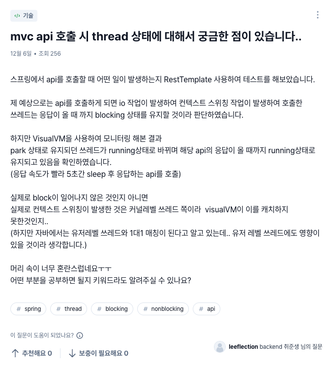 - 커리어리 질문자 분과 저의 생각은 Blocking I/O 시나리오 였습니다.