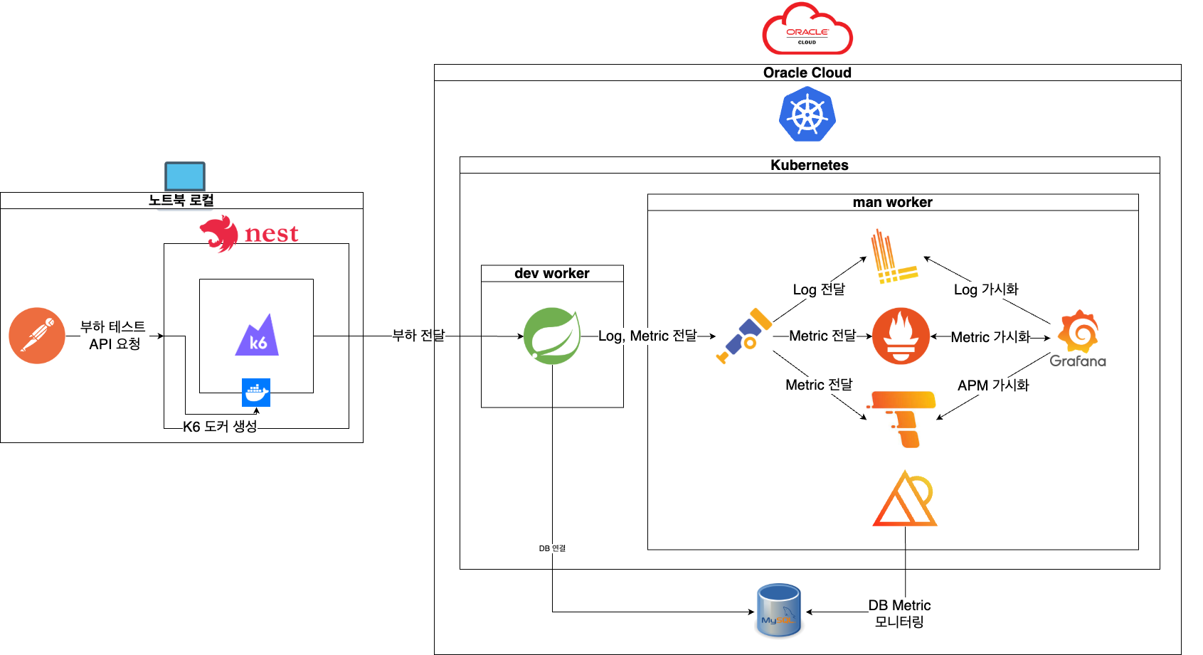 대학교 때 꼭 해보고 싶은 것 중에 부하테스트랑 APM이 있었다. 트래픽이랑 성능 이야기를 하다보면 꼭 나오는 키워드인데, 내가 만든 서버에선 이런 걸 어떻게 할지 정말 감이 안와서... 막상 jmeter로 시도해봤을 땐 세팅을 제대로 한 건 맞는건지, 결과를 어떻게 봐야하는 건지 잘 몰라서 흥미가 좀 식었던거 같다. (백엔드 시작한지 반년도 안 돼서 마음만 앞선 응애 개발자) 그래도 이번 기회에 죄다 구축해서 신나시잖아요~!
