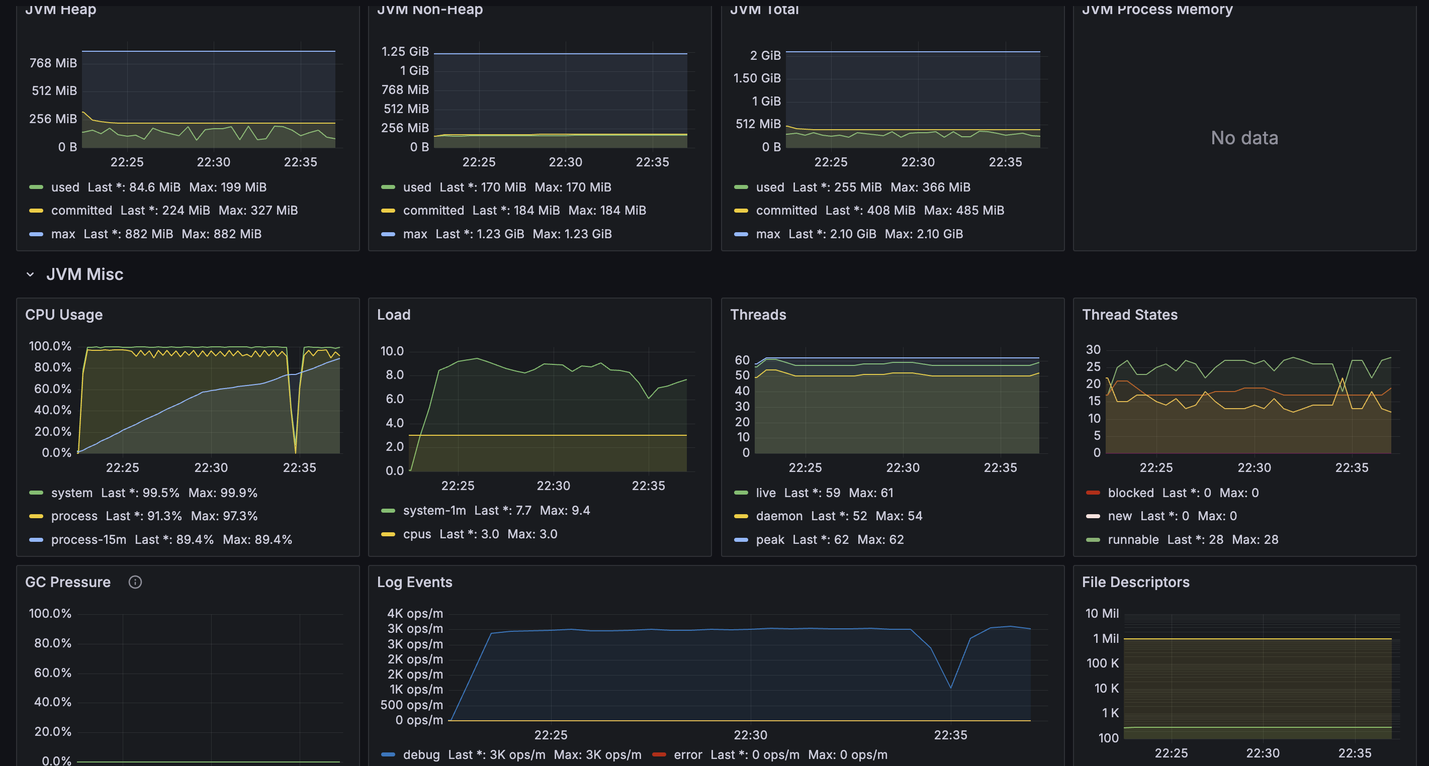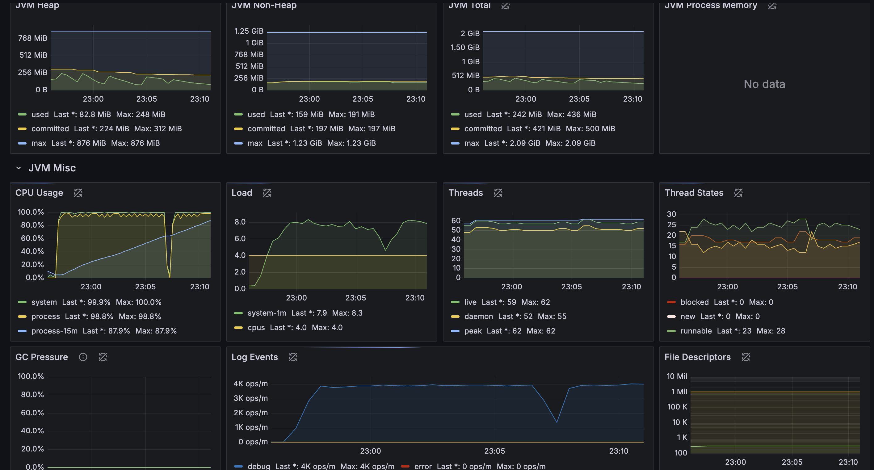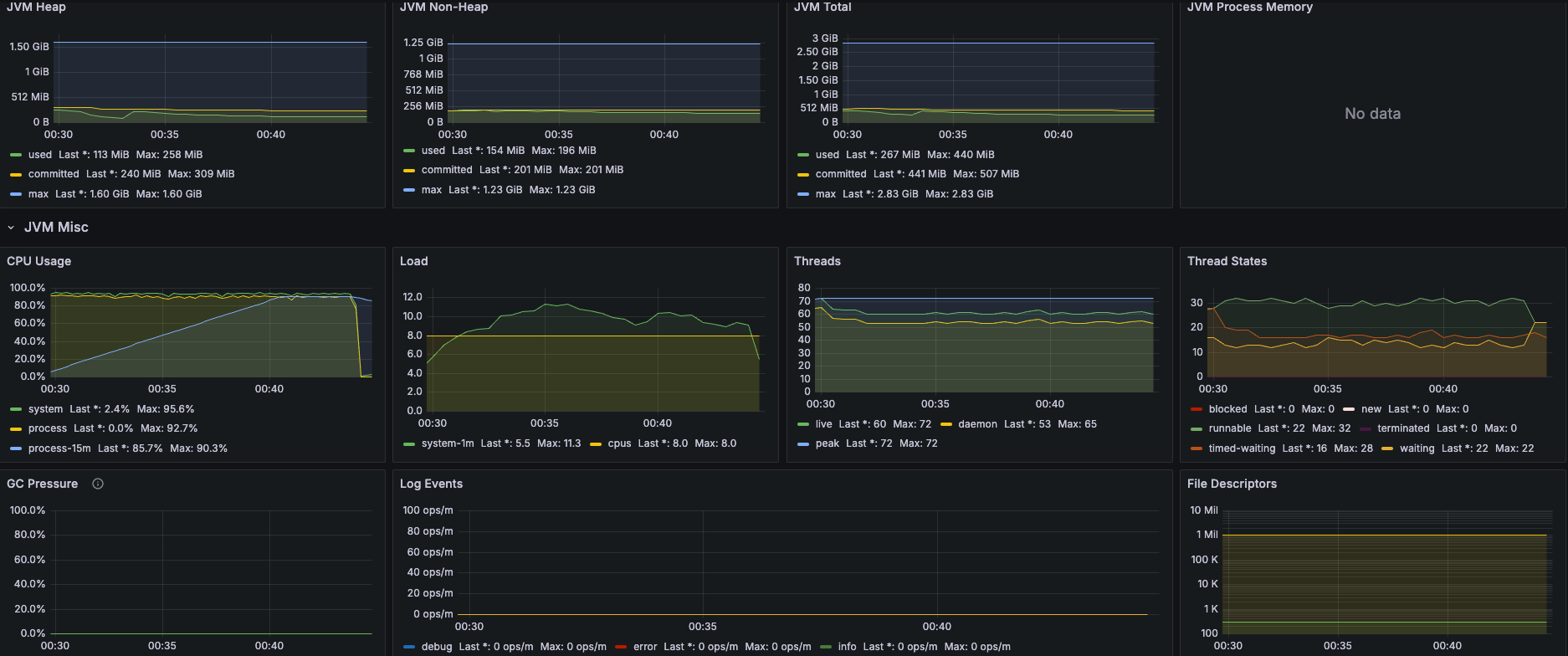 CPU 작업이 너무 많은 것 같아서 뭔가 덤프를 떠보고 싶었다. async-profiler를 써보려고 했는데 아무리 해도 pod 프로파일링이 안 돼서 실패했다. libasyncProfiler.so를 pod에도 넣어보고, worker node에서 crictl ps나 jps -l로 PID 잡아서 시도도 해봤는데 flamechart.html를 주지 않는다ㅠㅠ 딱히 방법이 잘 생각 안나서 답답한 마음에 확 8코어로 올려봤다.