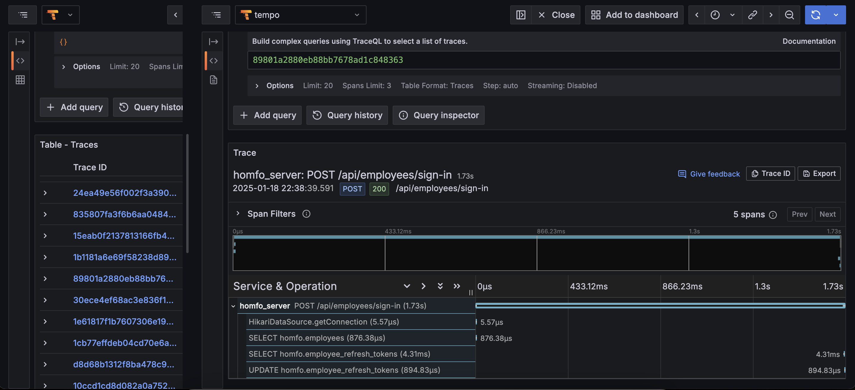 최근에 K6, async-profiler 등을 알게 되어 대학생 시절에 못 해봤던 부하테스트를 직접 해봤다. Grafana 나 flame-chart 같은 걸로 쉽게 접근할 수 있어서, 되게 편리하게 세팅하고 결과도 볼 수 있었다. 이 김에 욕심이 생겨서 Grafana LGTM + Opentelemetry + PMM 까지 연동해서, 서비스의 시작부터 끝까지 전부 확인해보고 싶었다.