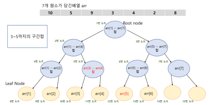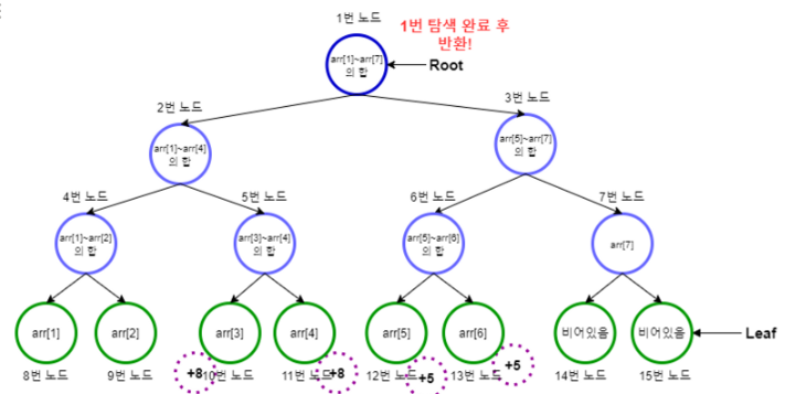 최종 자식 5번 노드 + 자식 12번 노드 = 3 ~ 5 까지의 합이 반환