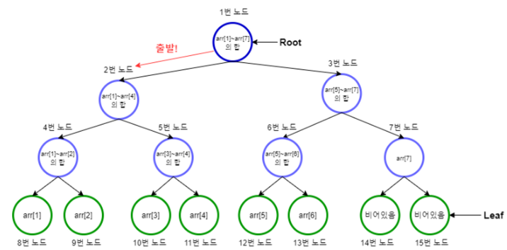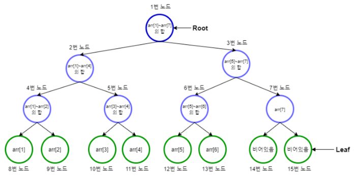 전체 구간의 크기는 리프 노드의 개수와 같음