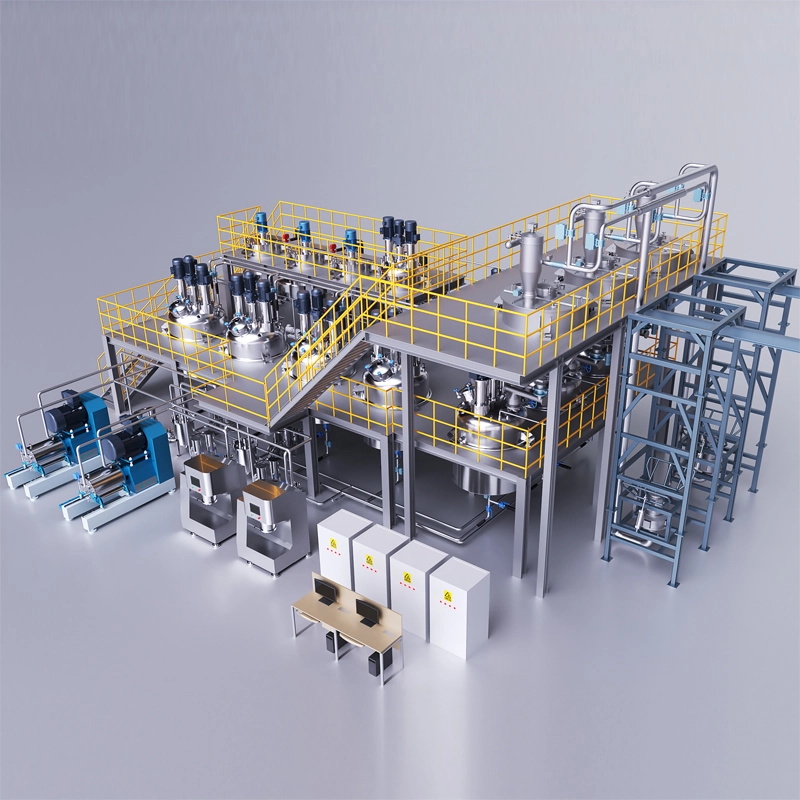 automatic production line, including pure water automatic metering and batching unit, additive automatic metering and batching unit, powder automatic feeding and metering unit, premixing and grinding unit, high-speed dispersion unit, glue mixing unit, and finished slurry temporary storage and transportation units, automated control systems and auxiliary supporting facilities, etc., including the entire process from raw materials entering the workshop to slurry coating, product testing, and process monitoring.