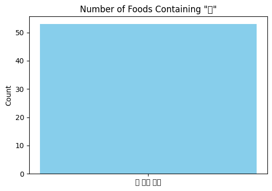 ask("음식명의 '밥'이라고 포함된 단어가 몇개인지 구하고 시각화해줘")