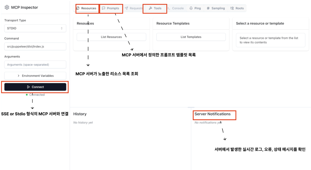 해당 툴은 MCP 서버에서 어떤 일이 일어나는지 직접 보고 상호작용하며 확인할 수 있도록 해주기 때문에, MCP 서버를 개발하거나 디버깅할 때 매우 유용하다.