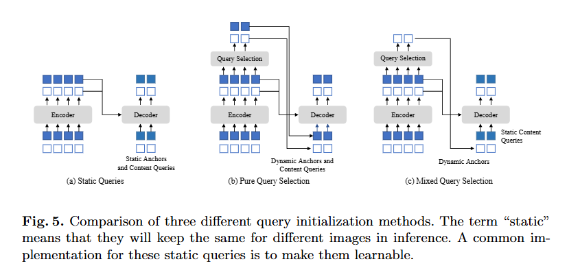 - Mixed query selection : 인코더 출력에서 위치 쿼리 선택, 내용 쿼리는 학습 가능하게 유지