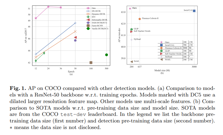 DINO는 모델 크기와 데이터 크기 양방향에서 우수한 확장성을 보이며, Detection Transformer 분야의 새로운 기준을 제시한다.