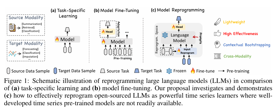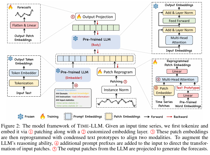해당 논문에서는 TIME-LLM이라는 LLM Reprogramming Framework를 제안.