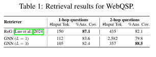 Table 2. KGQA 벤치마크 성능비교 (Performance Comparison on WebQSP & CWQ)
