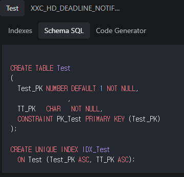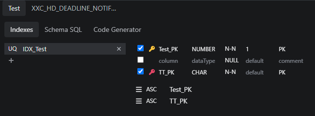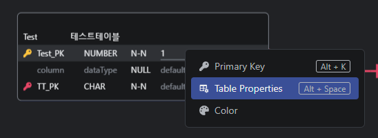 구성한 컬럼에서 Alt+K를 통해 해당 컬럼을 PK로 지정할 수 있다.
